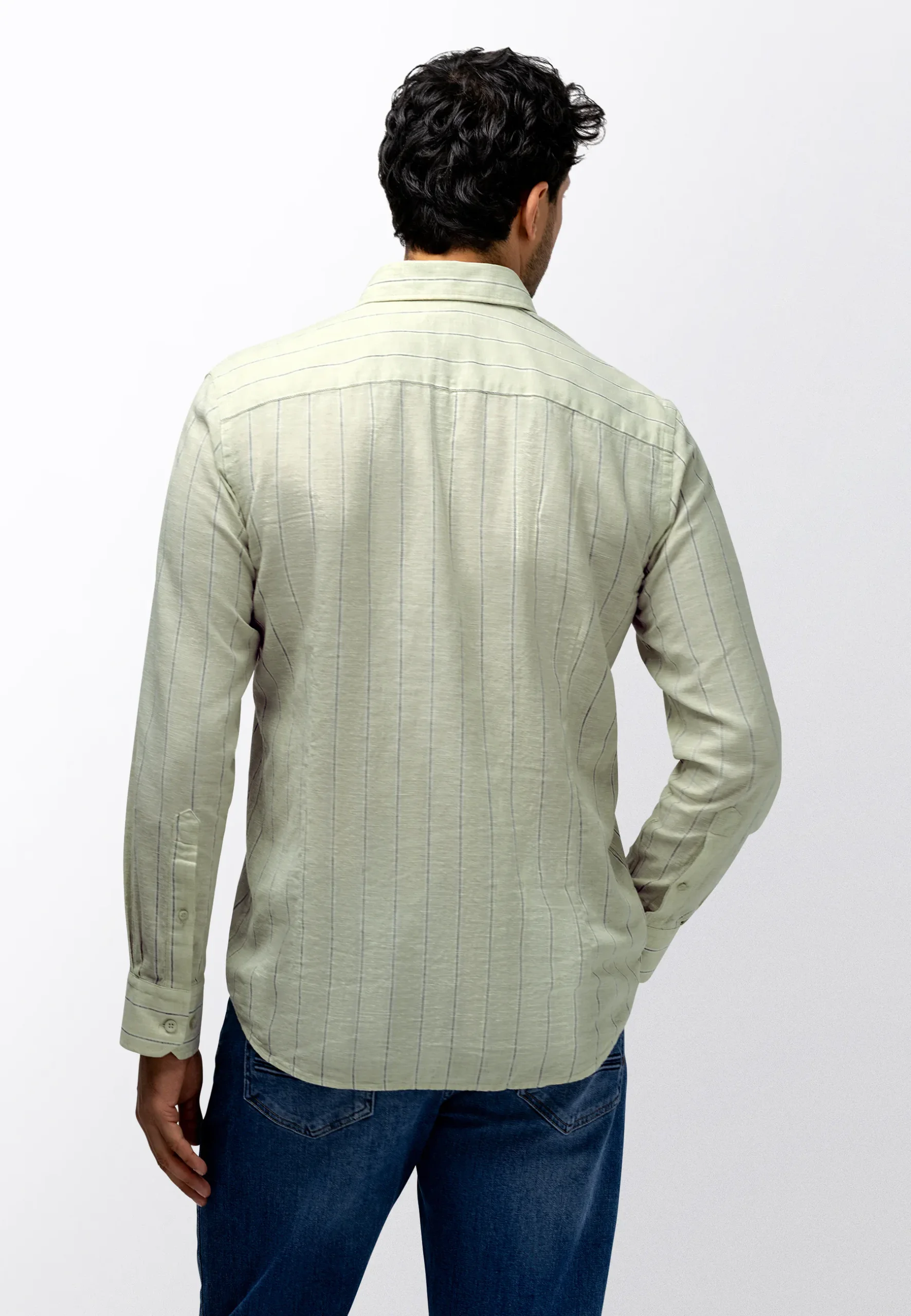 Overhemd linnen blend streep green