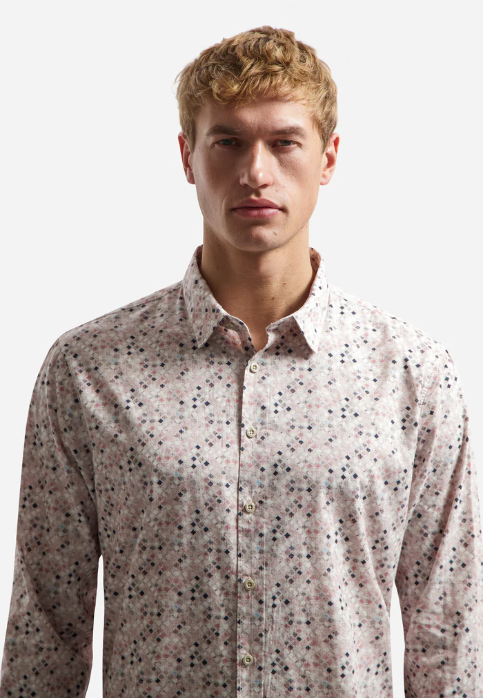 Dit geweven shirt met lange mouwen heeft een verfijnde microprint over het hele lichaam. Gemaakt van een zachte katoenmix. samenstelling 67% katoen, 33% viscose (LENZING™ ECOVERO™)