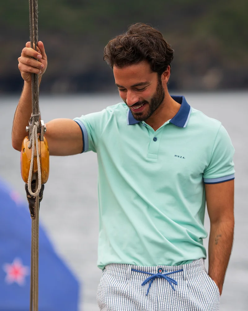 Deze lichtgroedne NZA New Zealand Auckland polo heeft een klassieke polokraag donker blauw met knoopsluiting en korte mouwen, voorzien van subtiele logodetails op de borst. Gemaakt van 95% katoen en 5% elastaan, biedt deze polo zowel comfort als stretch voor een optimale fit. De regular fit zorgt voor een ontspannen pasvorm die ideaal is voor zowel casual als meer geklede outfits.