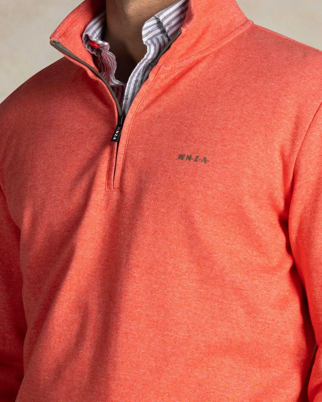 – Half zip-kraag met subtiel logo